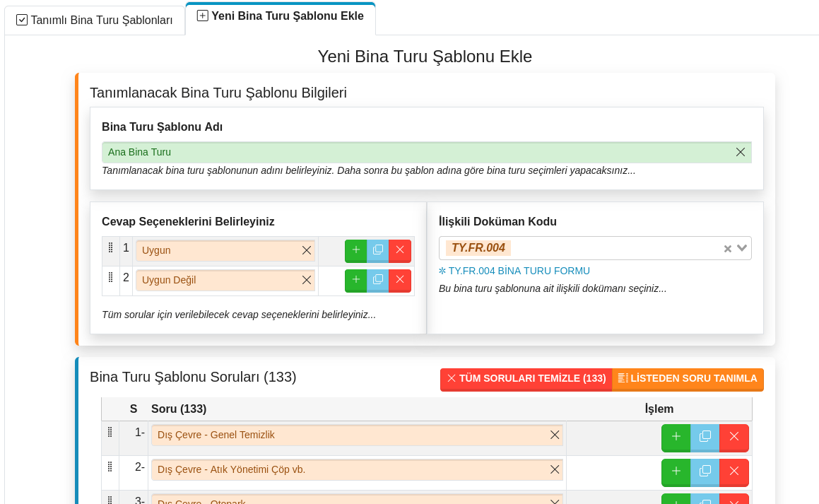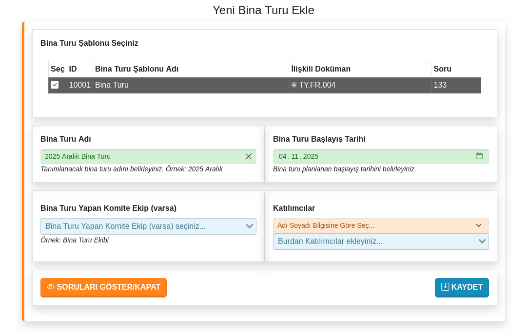 Bina turu yaparken, incelemek istediğiniz alanlara ait sorularınız için şablon oluşturun.