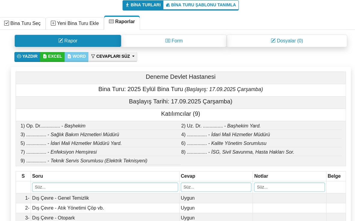 Bina turlarına ait verileri (uygun, uygun değil vs.) otomatik olarak raporlayın ve kolayca analiz edin.