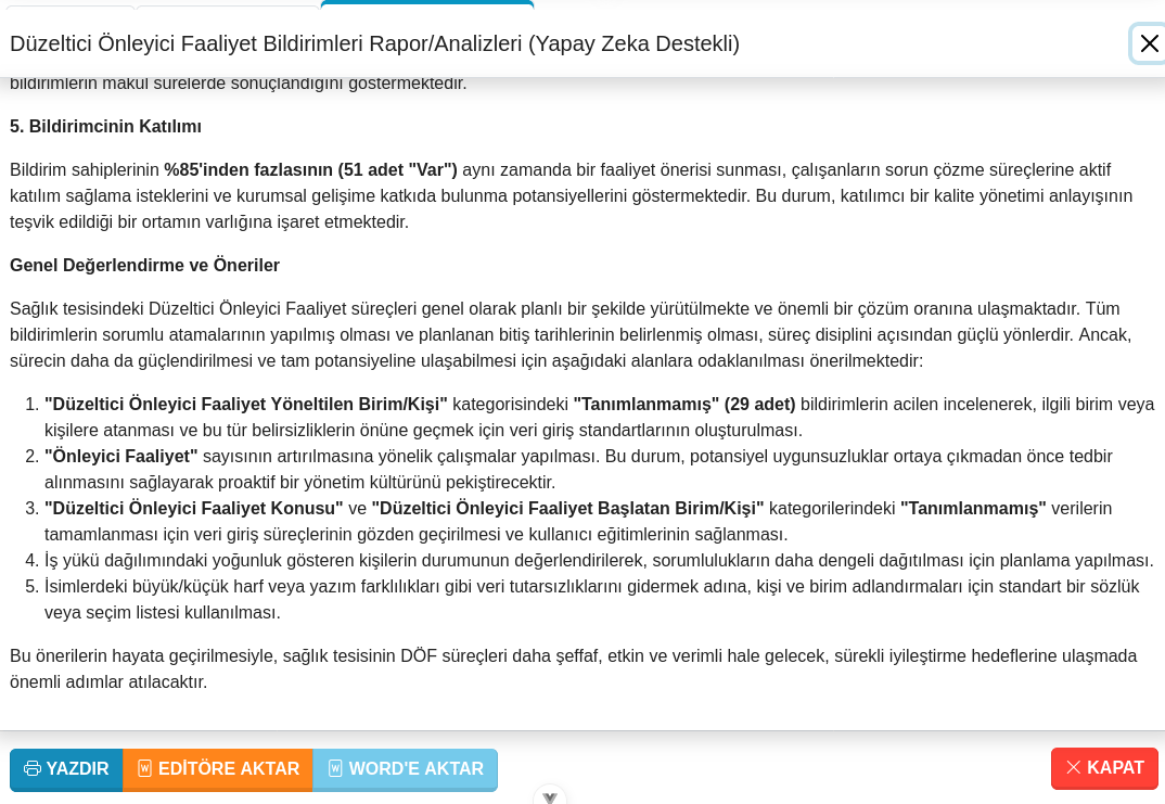 DÖF/DİF analizleriniz için, analiz sayfamızda bulunan "Yapay Zeka Yorumu" butonu ile isterseniz yapay zekadan yorumlama ve analiz desteği alabilirsiniz.